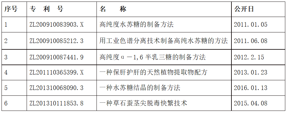 食品院牵头制定两项水苏糖行业标准,制备并申报成功了水苏糖纯度标准物质(2018国标物证字第1847号),承担了国家863项目和多项国家科技项目,申报水苏糖相关有权发明专利6项,目前与雷丁大学、西苑医院、协和医院、北京儿童医院、湘雅医院开展了多项应用研究合作。